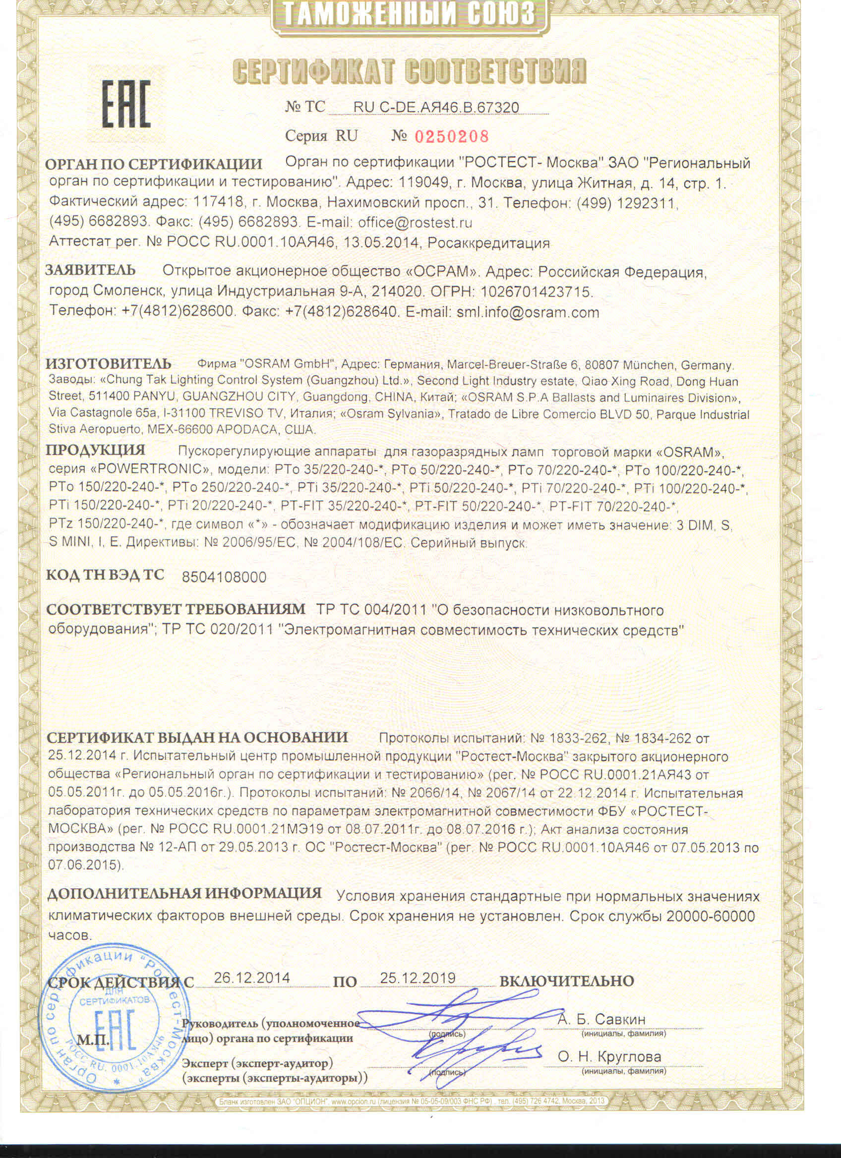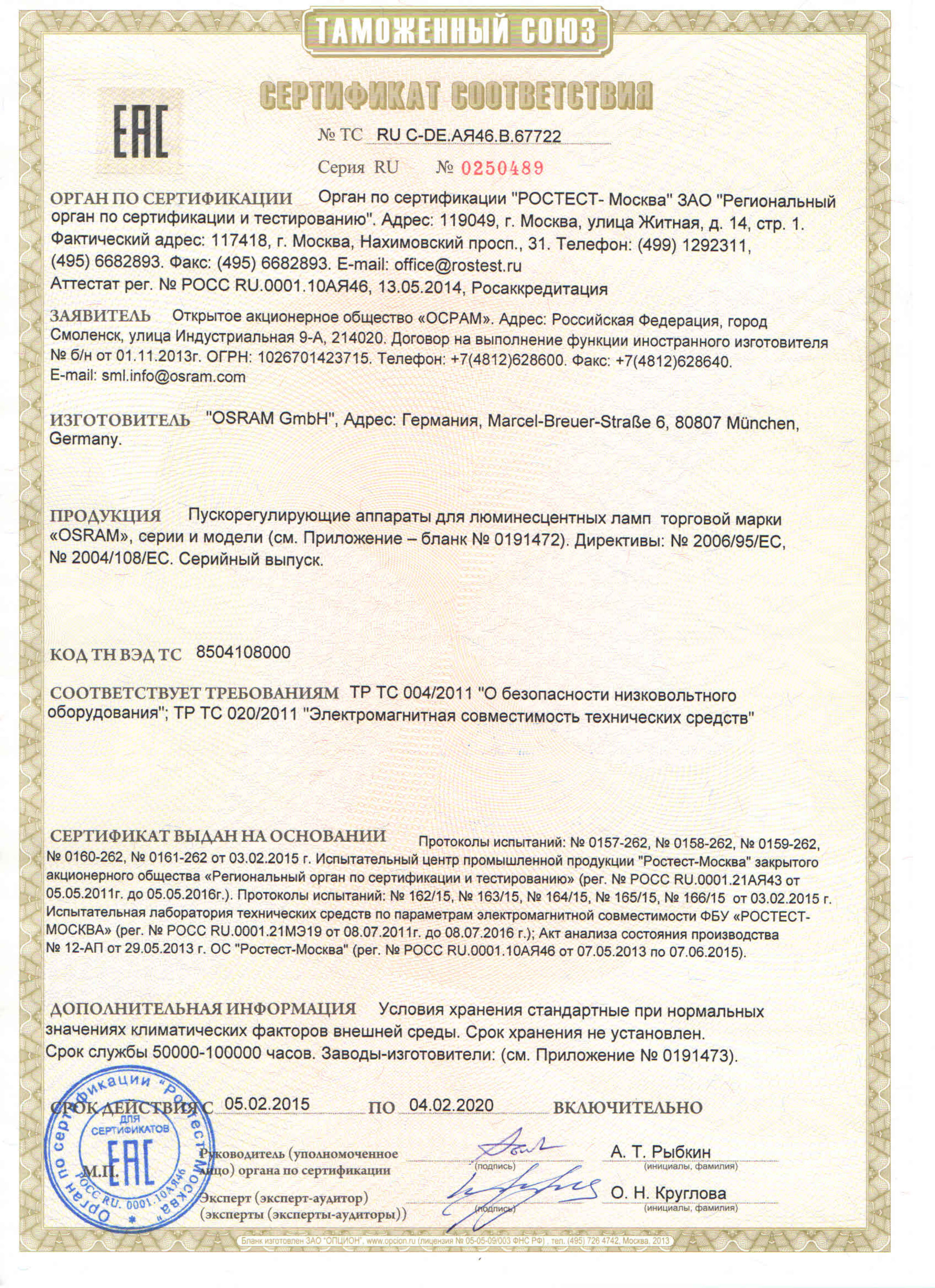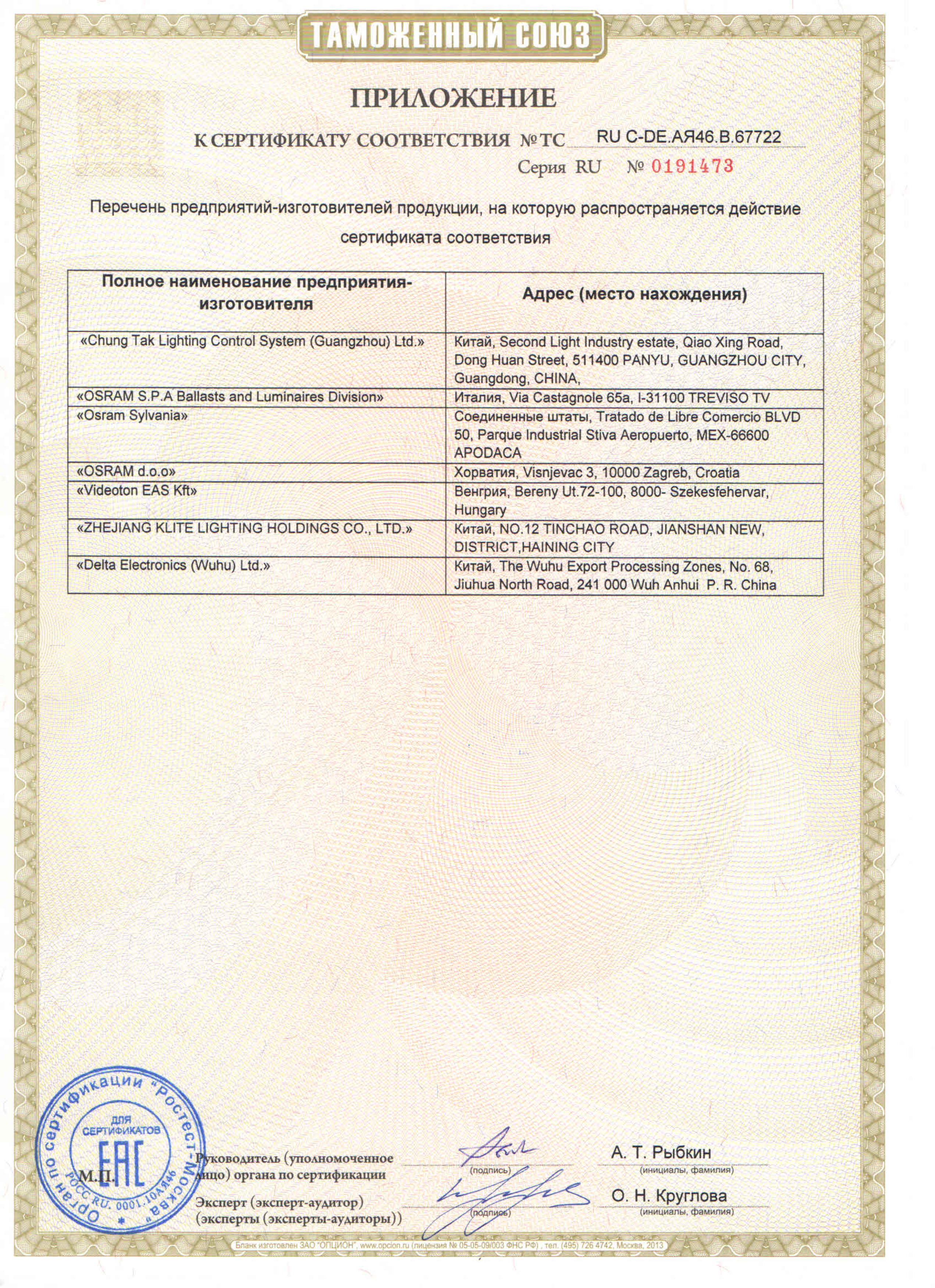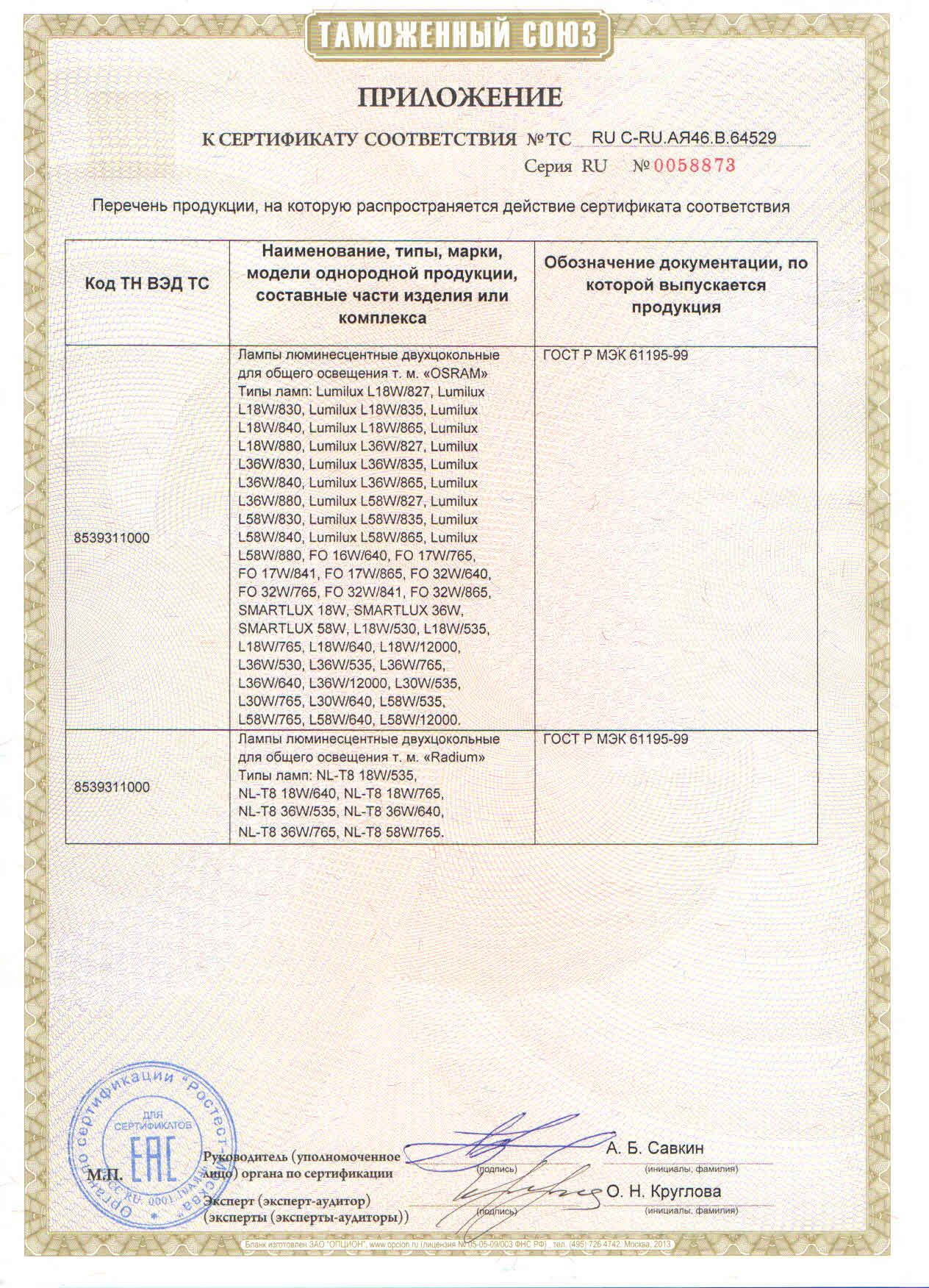 Люмлампы со встроенными пускорегулирующими аппаратами. Приложение 2