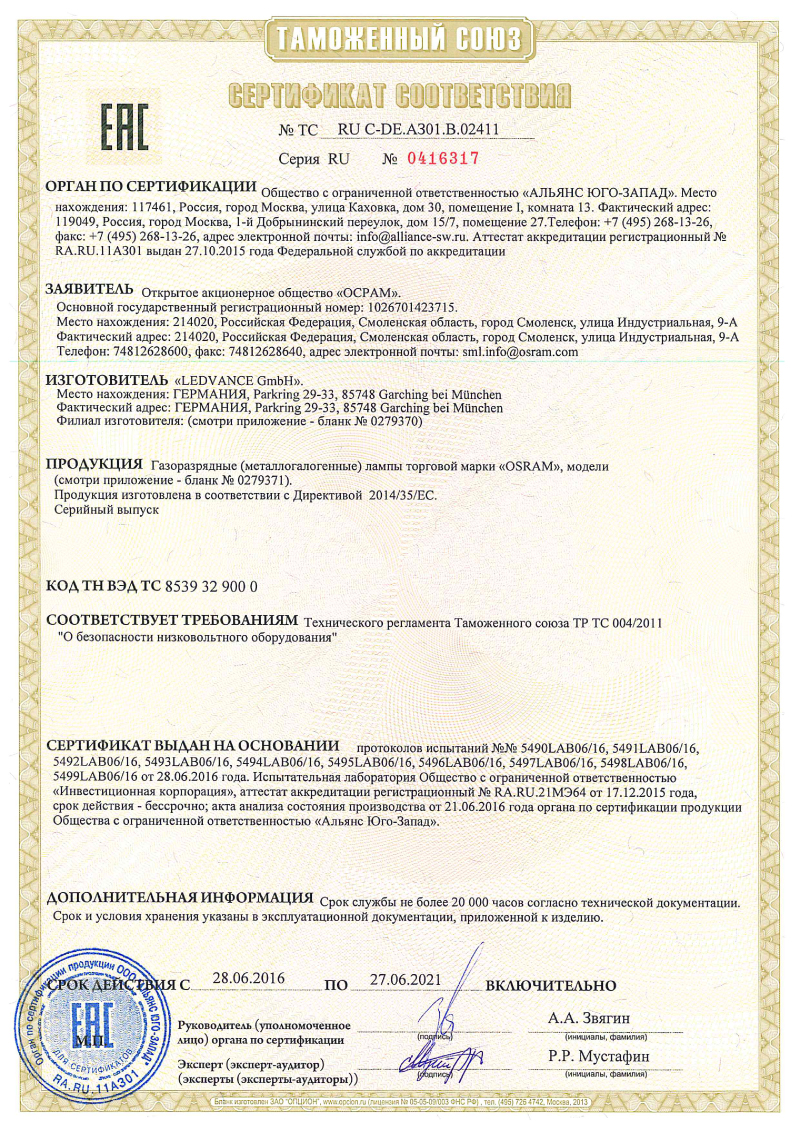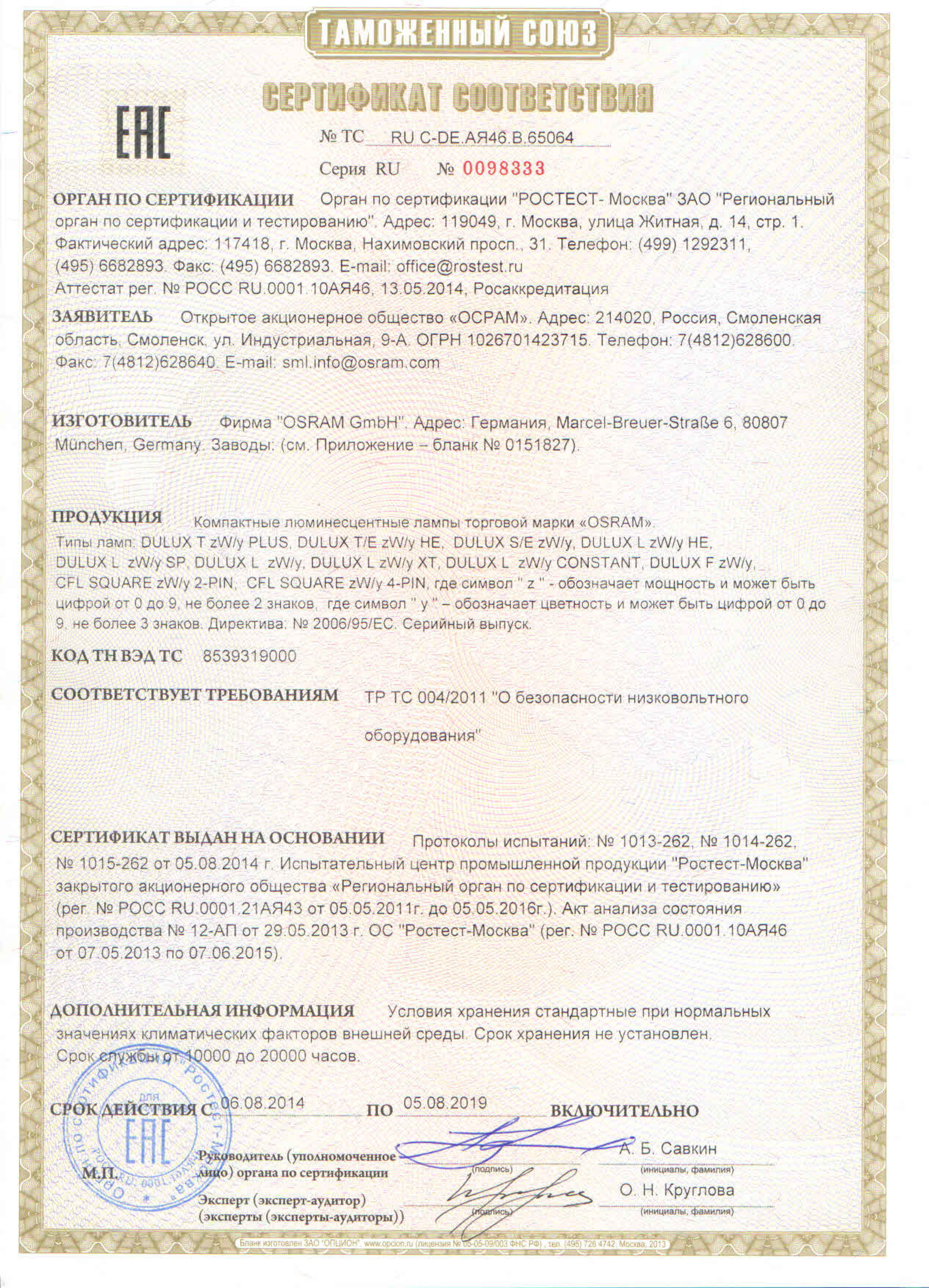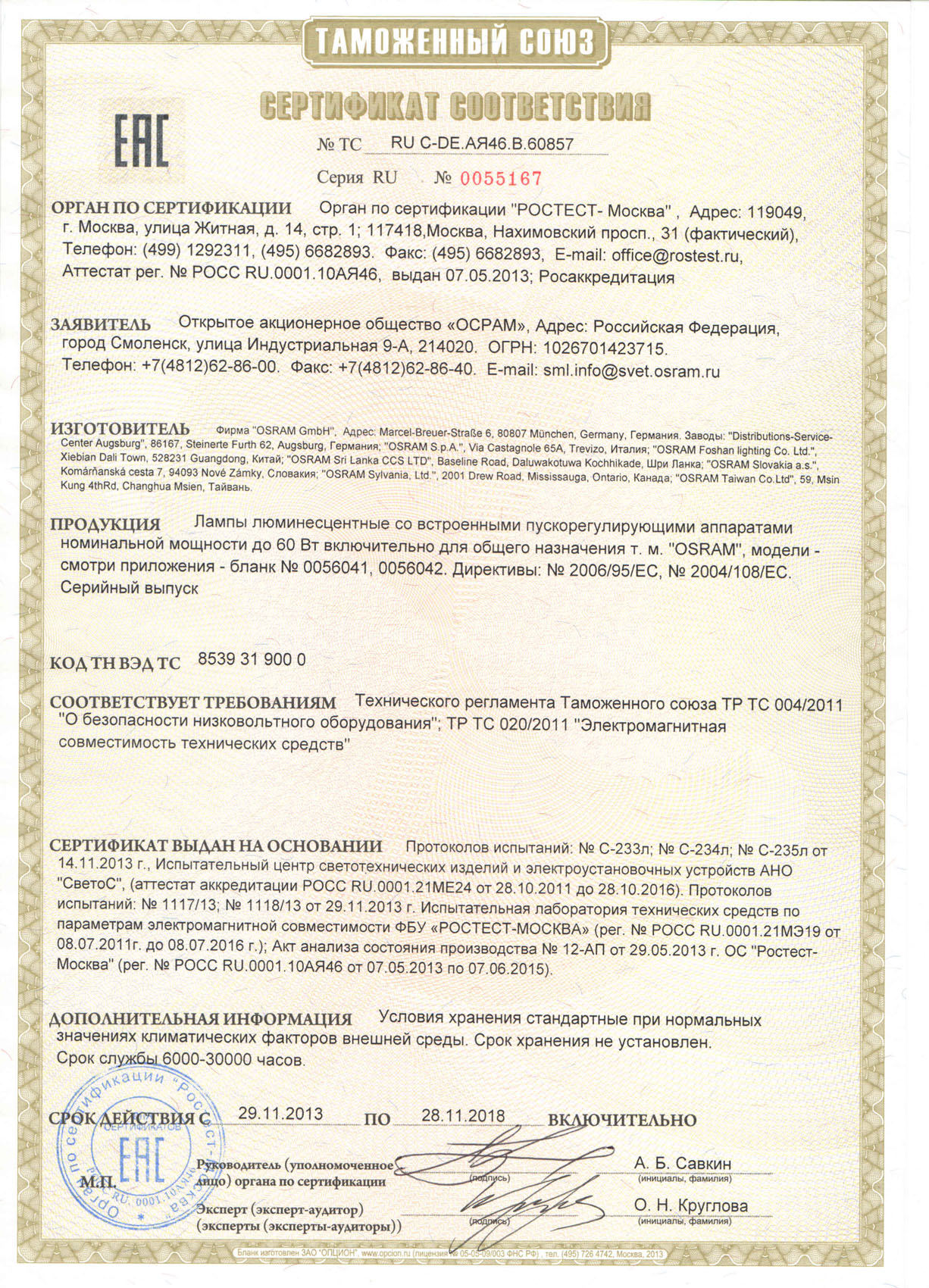 Люмлампы со встроенными пускорегулирующими аппаратами. Приложение 1