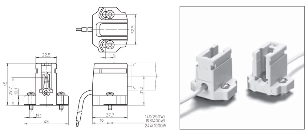 Патрон 02575 Vossloh Schwabe Fc2 до 5KV винты M4 подвижный, провод d3,6x300