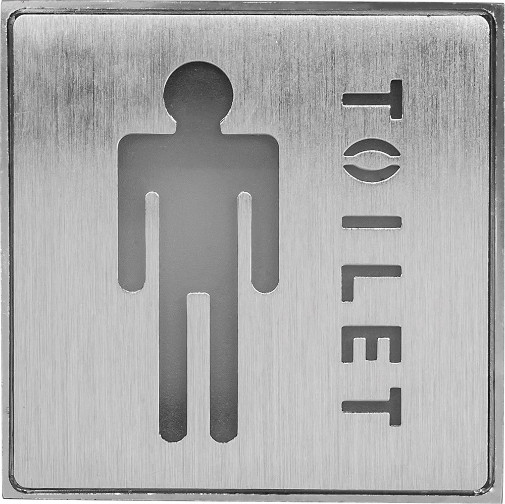Светильник аккумуляторный FERON EL53 вывеска "Туалет мужской", 1LED/синий, 230V, IP20, аккумулятор 3,6/350mAh/NI-CD, количество режимов 1, время зарядки 10 часов, время работы 2 часа, цвет серебро, 110*110*20мм