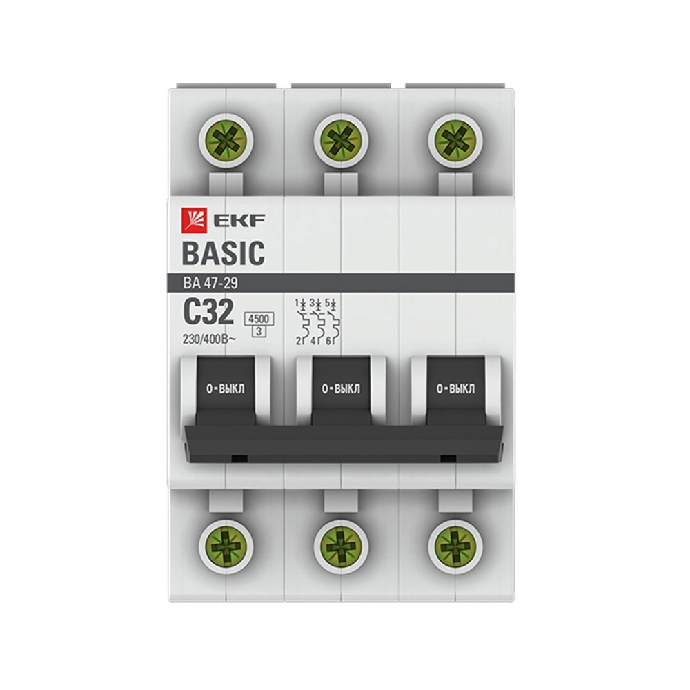 Автоматический выключатель ВА 47-29, 3P 32А (C) 4,5кА EKF Basic