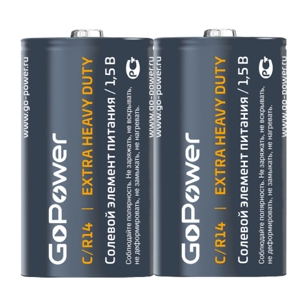 Батарейка GoPower R14 C Shrink 2 Heavy Duty 1.5V (2/24/288) (в упаковке 2шт)