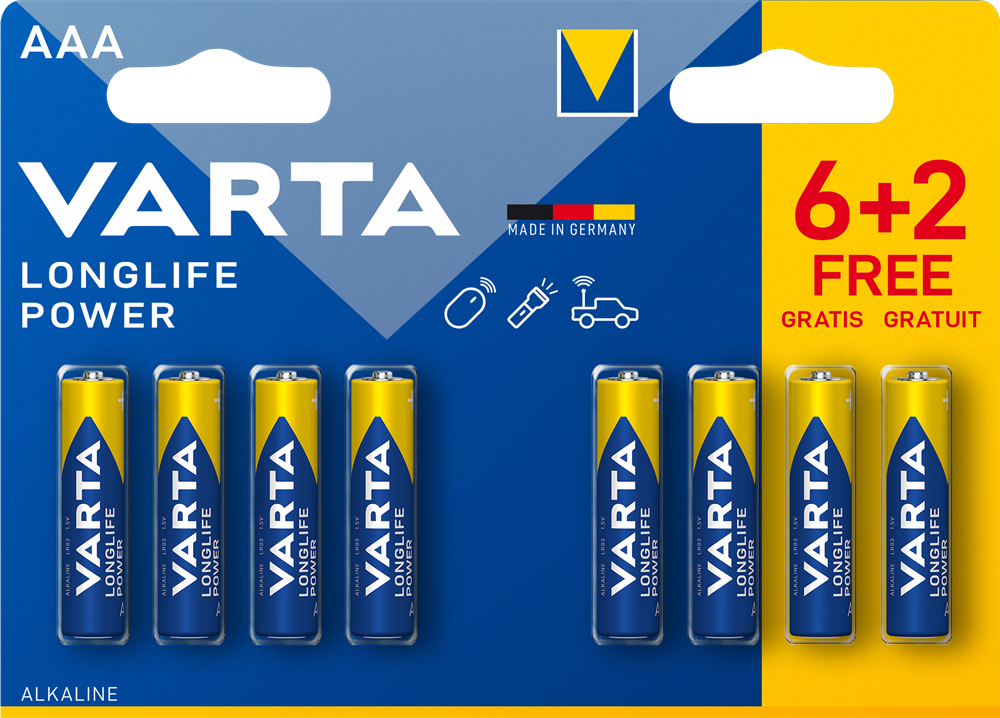 Батарейки VARTA LONGLIFE POWER LR03/ААА BL6+2 (блистер 8шт)