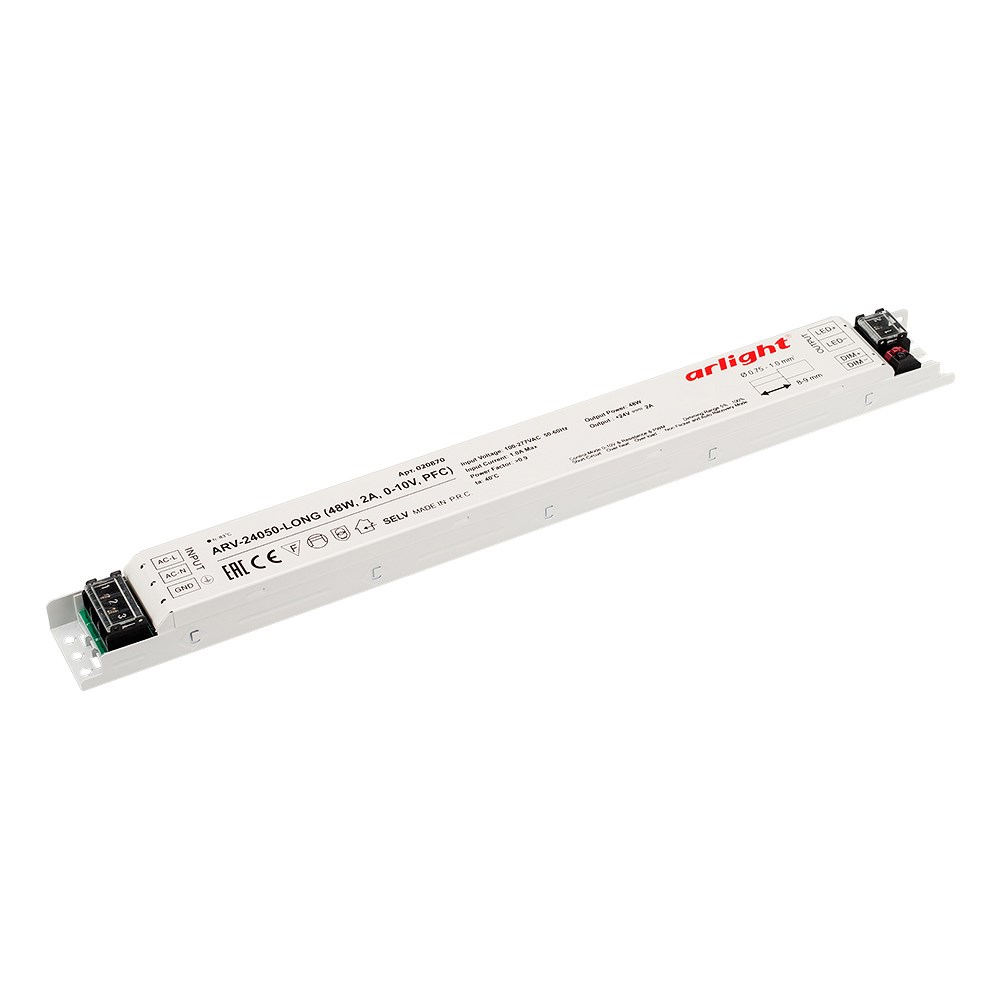 Блок питания ARV-24050-LONG (48W, 2A, 0-10V, PFC) (Arlight, IP20 Металл, 2 года)