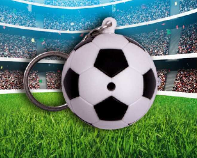 Светодиодный фонарик-брелок, в виде футбольного мяча.