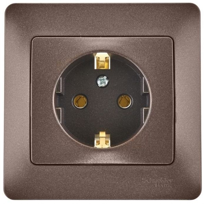 GLOSSA Розетка с заземлением шоколад в сборе