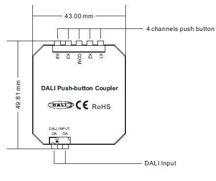 Миниатюрный конвертер сигнала от внешних кнопок возвратного типа в цифровой сигнал DALI-2. Входы - настраиваемые кнопки свободного функционала. Назначение кнопок задается в мастер-контроллере DALI LOGIC. Питание устройства от шины DALI, внешнее питание не требуется. Габариты конвертера составляют 50х43х15мм, корпус белого цвета, удобная установка в стандартную монтажную коробку.