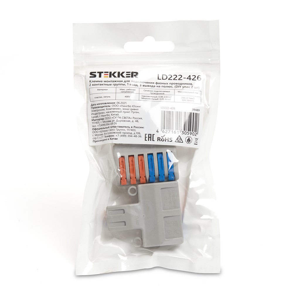 Клемма монтажная для фазных проводников, 2 контактные группы, LD222-426