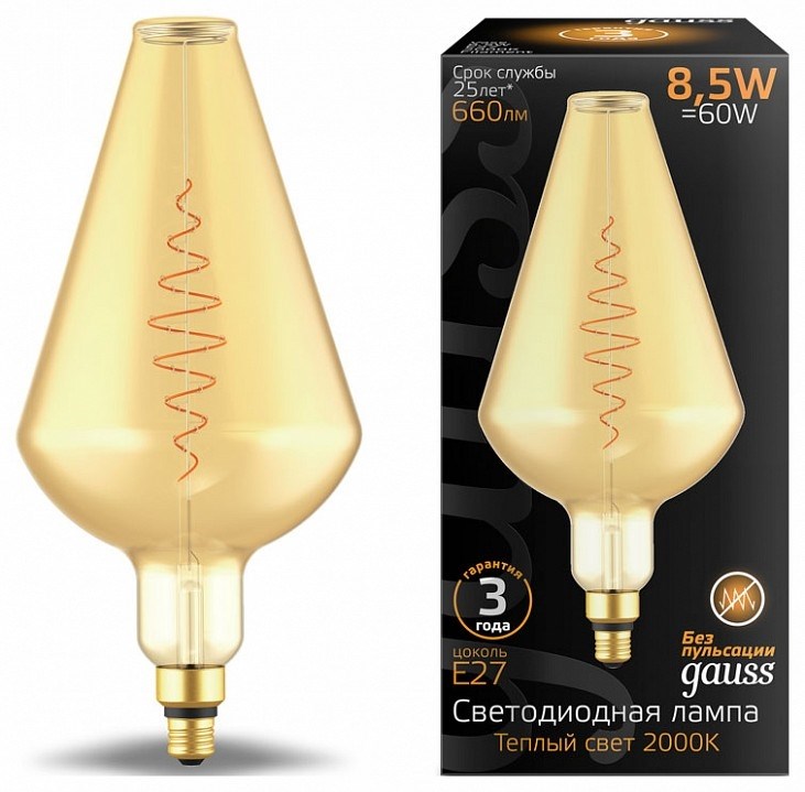 Лампа Gauss Filament Vase 8.5W 660lm 2000К Е27 golden flexible LED 1/2