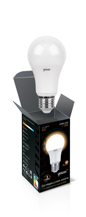 Лампа Gauss LED A60 10W E27 2700K 1/10/40