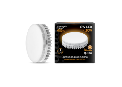 Лампа Gauss LED GX53 8W 2700K диммируемая 1/25/100