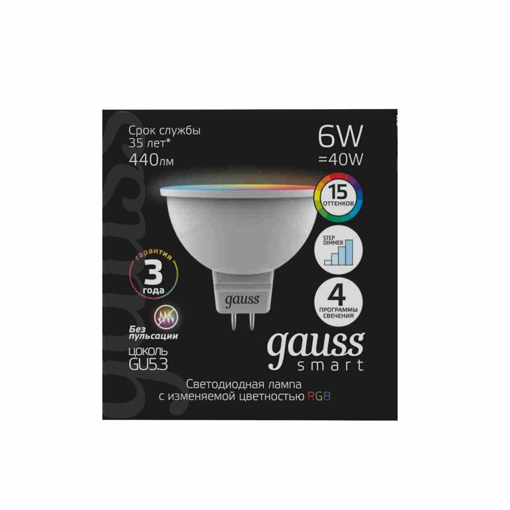 Лампа Gauss MR16 6W GU5.3 RGBW+димирование LED 1/10/100