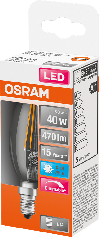 LEDSCLB40D 5W/840 230V FIL E14 10X1OSRAM