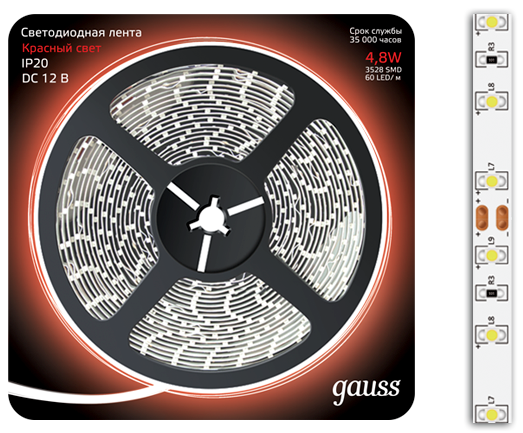 Лента LED 3528/60-SMD 4.8W 12V DC красный (блистер 5м)