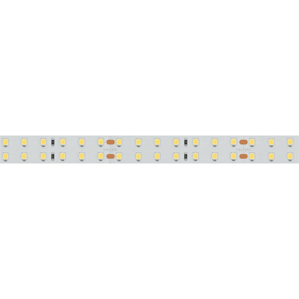 Широкая двухрядная лента LUX шириной 15 мм с индексом цветопередачи CRI>85 и высокой световой эффективностью >125 лм/Вт. Светодиоды SMD 2835 (196 шт/м) с теплым белым цветом свечения (2900–3100 К). Мощность 20 Вт/м, напряжение питания 24 В. Минимальный отрезок 71.43 мм (14 светодиодов). Встроенные линии света для основного освещения. Создание накладных и подвесных светильников из алюминиевого профиля.