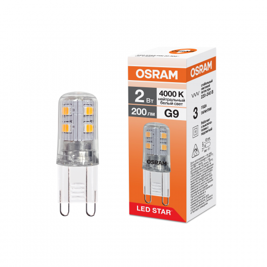 Лампа светодиодная капсула LSPIN 2W/840 220-240V CL G9 OSRAM