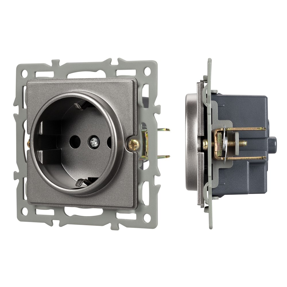 Механизм розетки с заземлением на 1 пост, совместим с рамками имеющими круглый вырез серии GLARE/PRESTO. Скрытый тип монтажа позволяет гармонично встроить в интерьер любого современного дизайн-проекта. Видимая часть механизма выполнена из высококачественного тугоплавкого пластика серого цвета. Контактная часть присоединяется при помощи винтовых зажимов, а усиленные монтажные лапки надежно фиксируют механизм в установочном подрозетнике. Степень защиты IP20 допускает использование устройства во влажных помещениях, с соблюдением требований эксплуатации.