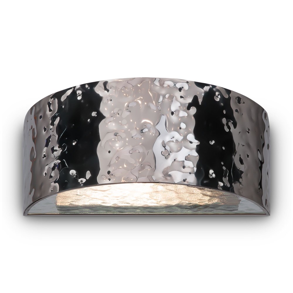 Арматура – металл в цвете хром. Фактурный рисунок нанесен посредством чеканки. Стекло с рельефной поверхностью скрывает источники света. Декора тивный эффект «рябь на воде».