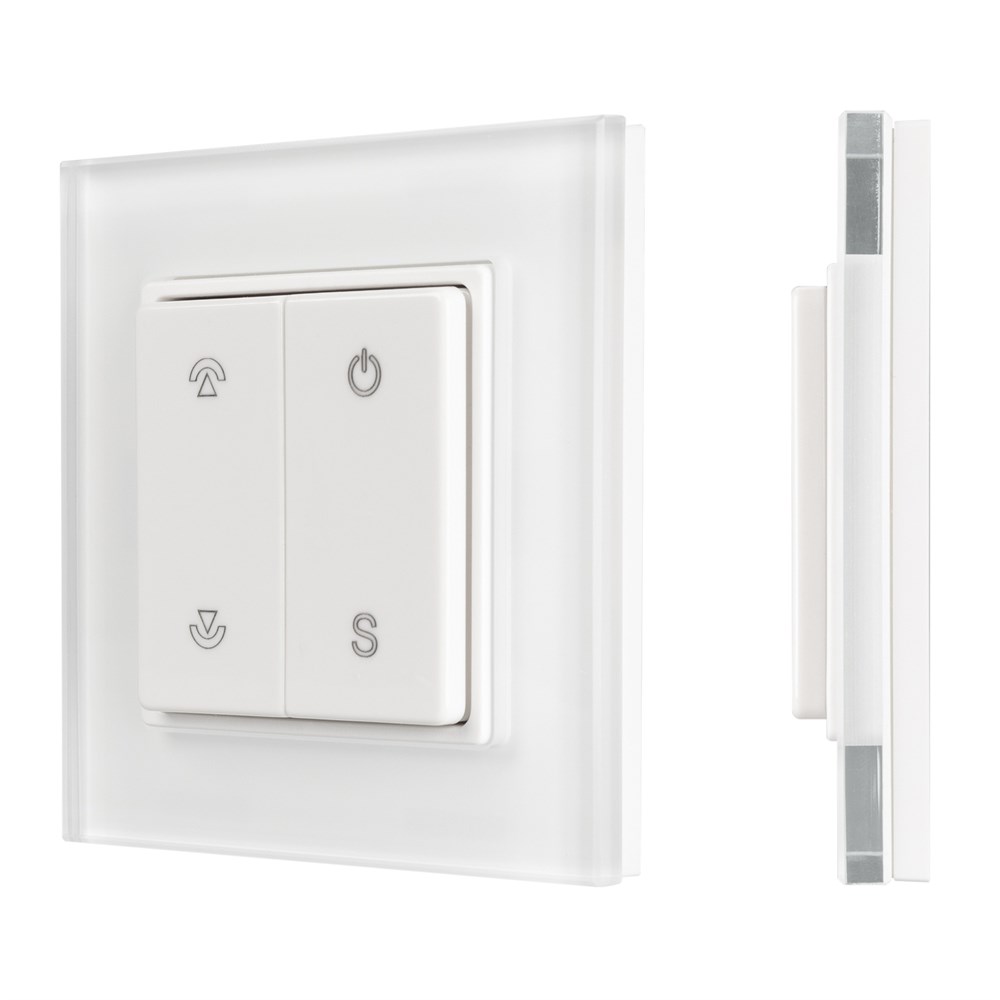 Накладная роторная панель белого цвета, изготовленная из пластика и стекла, защищенного от появления мелких царапин. Предназначена для управления одноцветными источниками света (ШИМ) с помощью кнопок. Основные выполняемые функции: включение и выключение света, регулировка яркости. Удобное и точное управление с помощью эргономичных кнопок. Изделие применяется в качестве однозонного пульта дистанционного управления диммерами и контроллерами серии SMART. К одной панели возможно привязать неограниченное количество диммеров и контроллеров. Устройство совместимо с диммерами и контроллерами серии SMART, поддерживающими управление по радиоканалу 2.4G. Питание 3В осуществляется от батарейки CR2032. Габариты панели 86х86х15 мм, корпус выполнен из пластика, лицевая часть - из пластика, рамка - из стекла. Устройство устанавливается на любую поверхность, к которой возможно прикрутить монтажную базу панели.