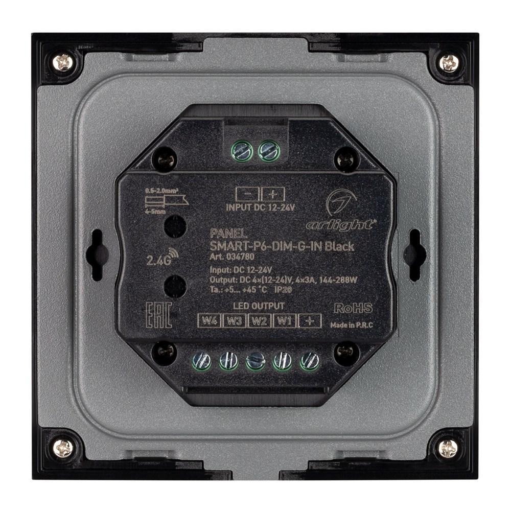Панель SMART-P6-DIM-G-IN Black (12-24V, 4x3A, Sens, 2.4G) (Arlight, IP20 Пластик, 5 лет)