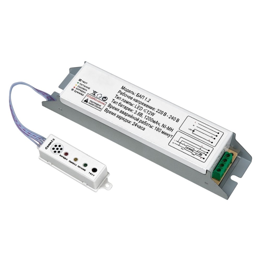 Pelastus Блок аварийного питания БАП 1.2 c собственным источником света для всех типов светильников.Батарея: Ni-MH 3.6В 1.2 А/ч.
