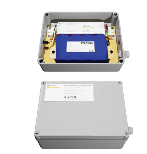 Pelastus Блок аварийного питания БАП 2.1 для светодиодных светильников до 40 Вт. Батарея:LiFePO4 12.8В 6Ач, IP65, 210х160х90 мм