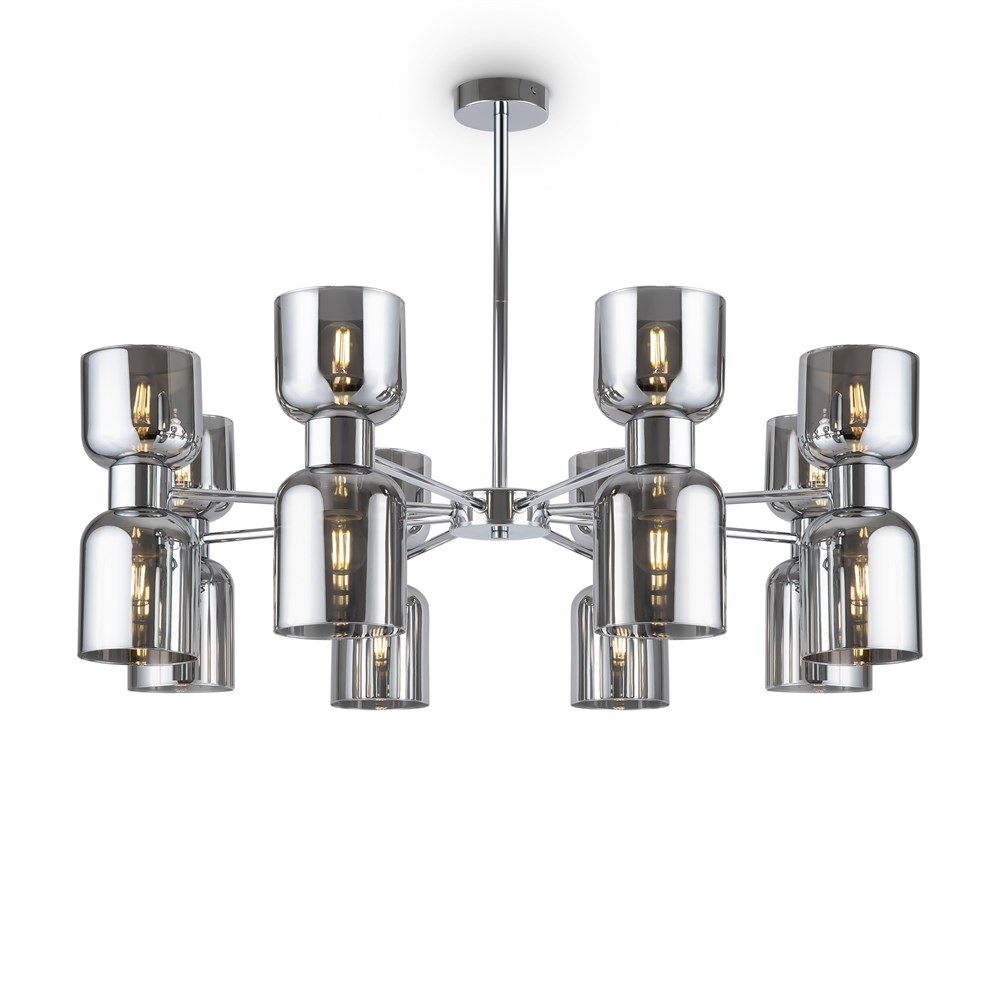 Арматура из металла. Оттенки – хром и латунь. Стеклянные плафоны в двух цветовых решениях: белый глянец и хром с зеркальным эффектом. Оригинальная форма плафонов «песочные часы», двунаправленный световой поток. Широкий ассортимент. Источник света – лампа с цоколем E27.