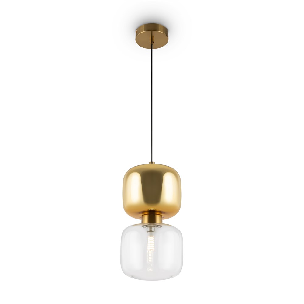 Металлическая арматура в двух оттенках: латунь, хром. Стеклянный плафон оригинальной формы. Верхняя часть плафона гальванизирована в тон арматуре, нижняя – прозрачная. Источник света – лампа G9.
