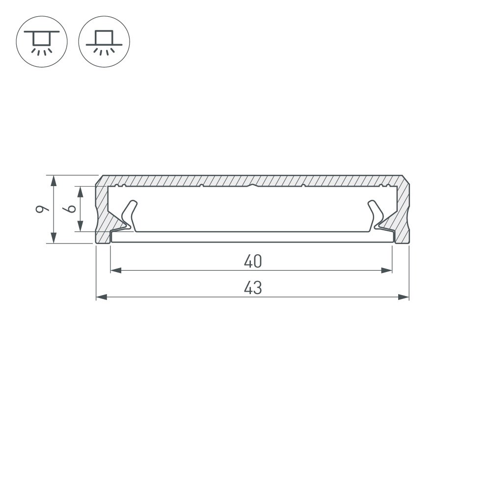 Алюминиевый анодированный профиль для светодиодных лент и линеек. Габаритные размеры (L×W×H): 2000x43x9,3 мм. Ширина площадки для ленты 40 мм. Экраны, заглушки и другие аксессуары приобретаются отдельно. Цена за 1 метр.