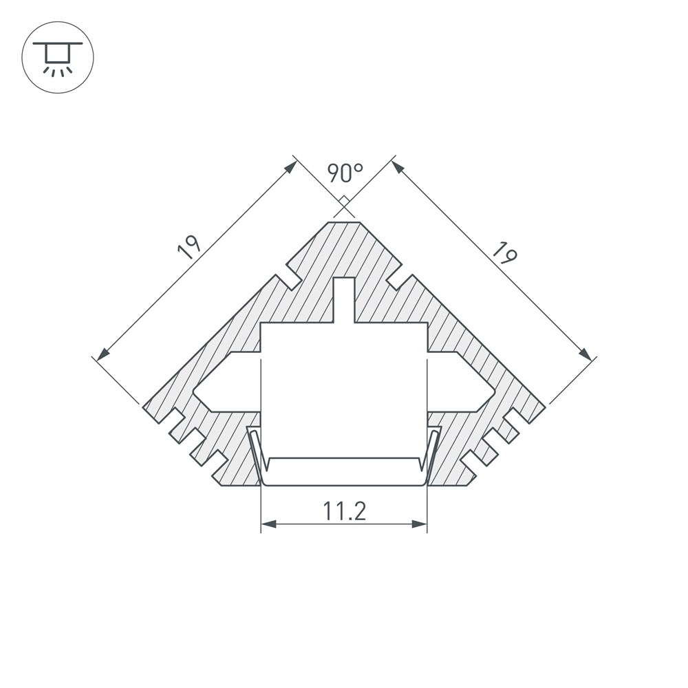 Алюминиевый анодированный угловой профиль для светодиодных лент и линеек. Анодированный в чёрный цвет. Габаритные размеры (L×W×H): 2000x19x19 мм. Ширина площадки для ленты 11,2 мм. Экраны, заглушки и другие аксессуары приобретаются отдельно. Цена за 1 метр.