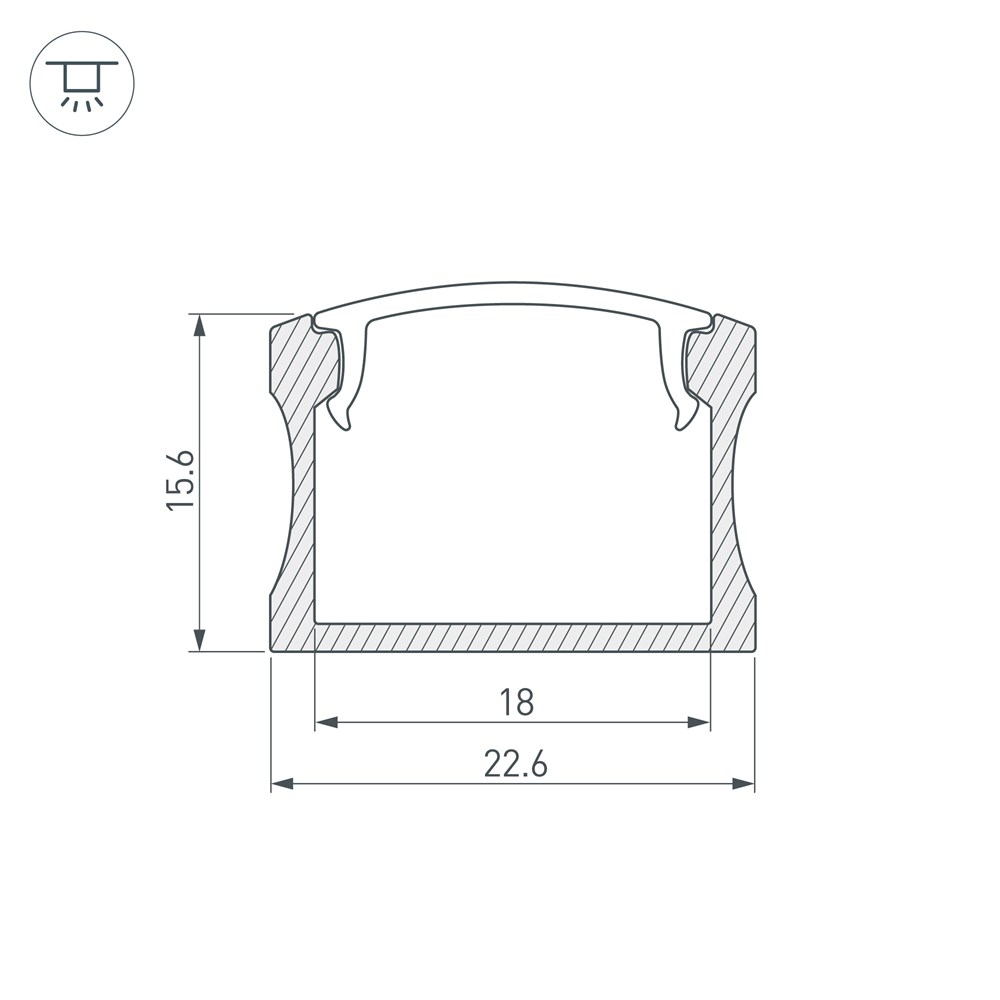 Габаритные размеры профиля составляют 2000 мм в длину, 22,6 мм в ширину и 15,6 мм в высоту. Площадка для установки светодиодных лент позволяет использовать ленту шириной до 18 мм и мощностью до 20 Вт/м. Это обеспечивает гибкость в выборе светодиодных лент и создает потрясающие световые решения.