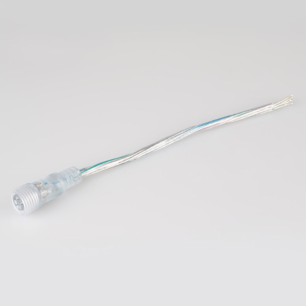 Круглый герметичный разъем DC 4-pin «мама» для соединения отрезков светодиодных лент RGB. Степень пылевлагозащиты IP65. Провод 22AWG длиной 15 см. Максимальный допустимый ток 2 А. Ответный разъем «папа» поставляется отдельно.