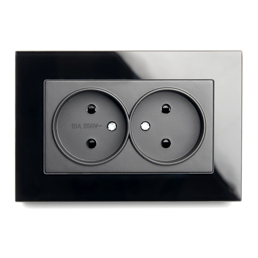 Розетка STEKKER GLS10-7013-05 на 2 гнездо, без заземления. Материал: Закаленное стекло, ABS пластик, полипропилен, латунь, цвет черный, размер 84*123*34мм. Номинальное напряжение 250, номинальный ток 10А, диапазон рабочих температур 0..+35°C, IP20