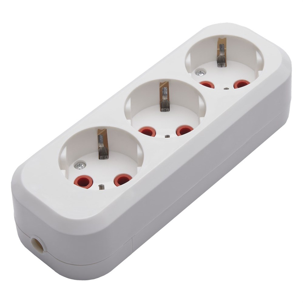 Розетка переносная STEKKER PST16-310-20 (разборная) на 3 гнездо, с заземлением. Материал: полипропил