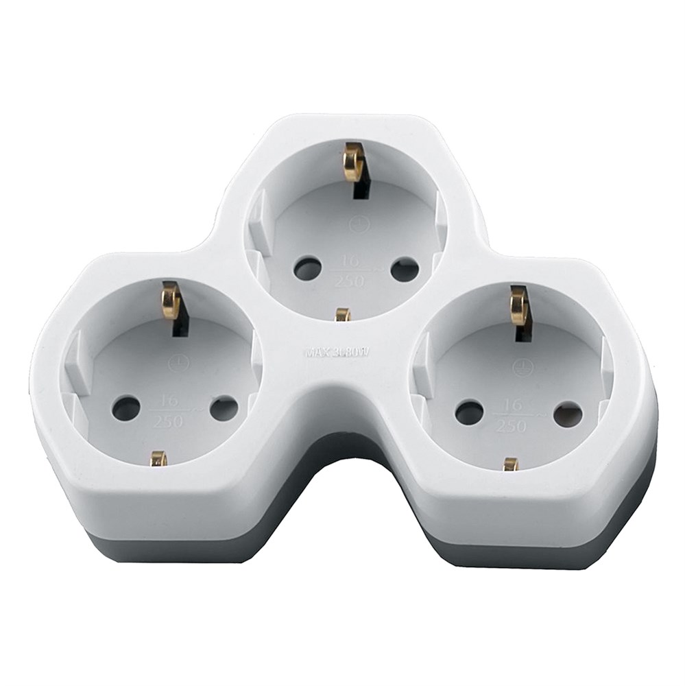Сетевой разветвитель STEKKER ADP16-13-20 с заземлением, количество присоединяемых устройств 3, номинальное напряжение 250В, номинальный ток 16А, материал пластик, цвет белый+серый, IP20