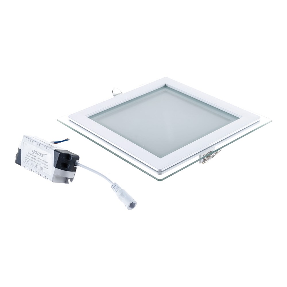 Светильник Gauss Glass кв 18W 1390lm 3000K 220-240V IP20 монт ?155х155 200*200*30 с дек стек LED 1/2