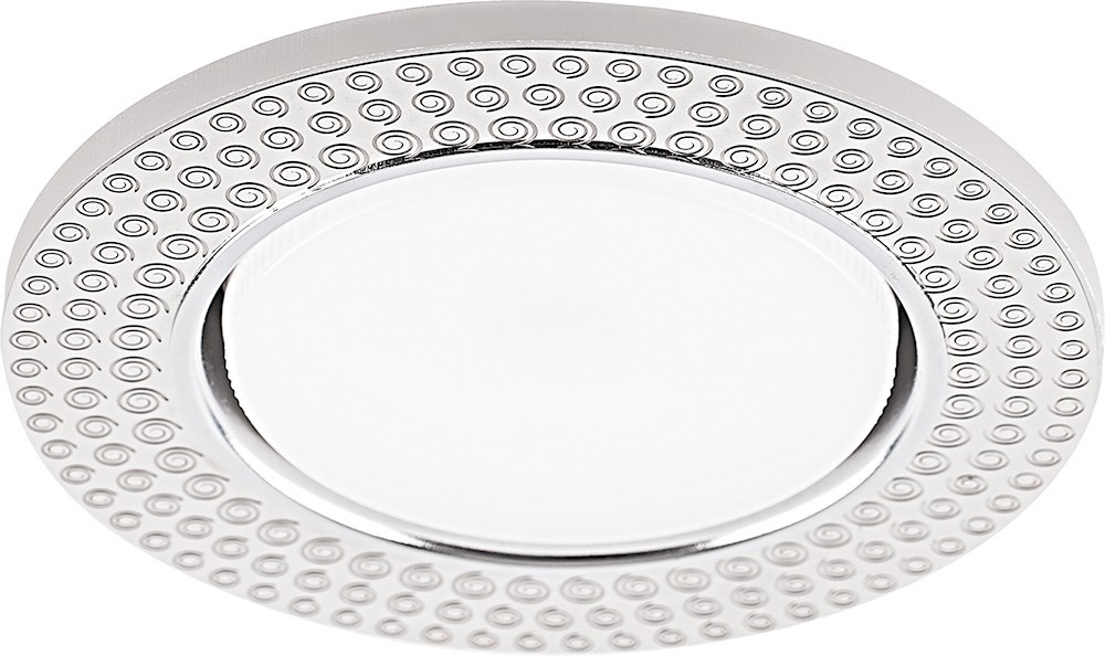 Светильник потолочный встраиваемый (ФВО) FERON CD4029, под лампу с LED подсветкой 20LED*2835 SMD 4000K, GX53 GX53, белый матовый хром, круг, 125*125*30 мм, монтажн.отв. 80 монтажный диаметр 80мм, корпус полимер, неповоротный