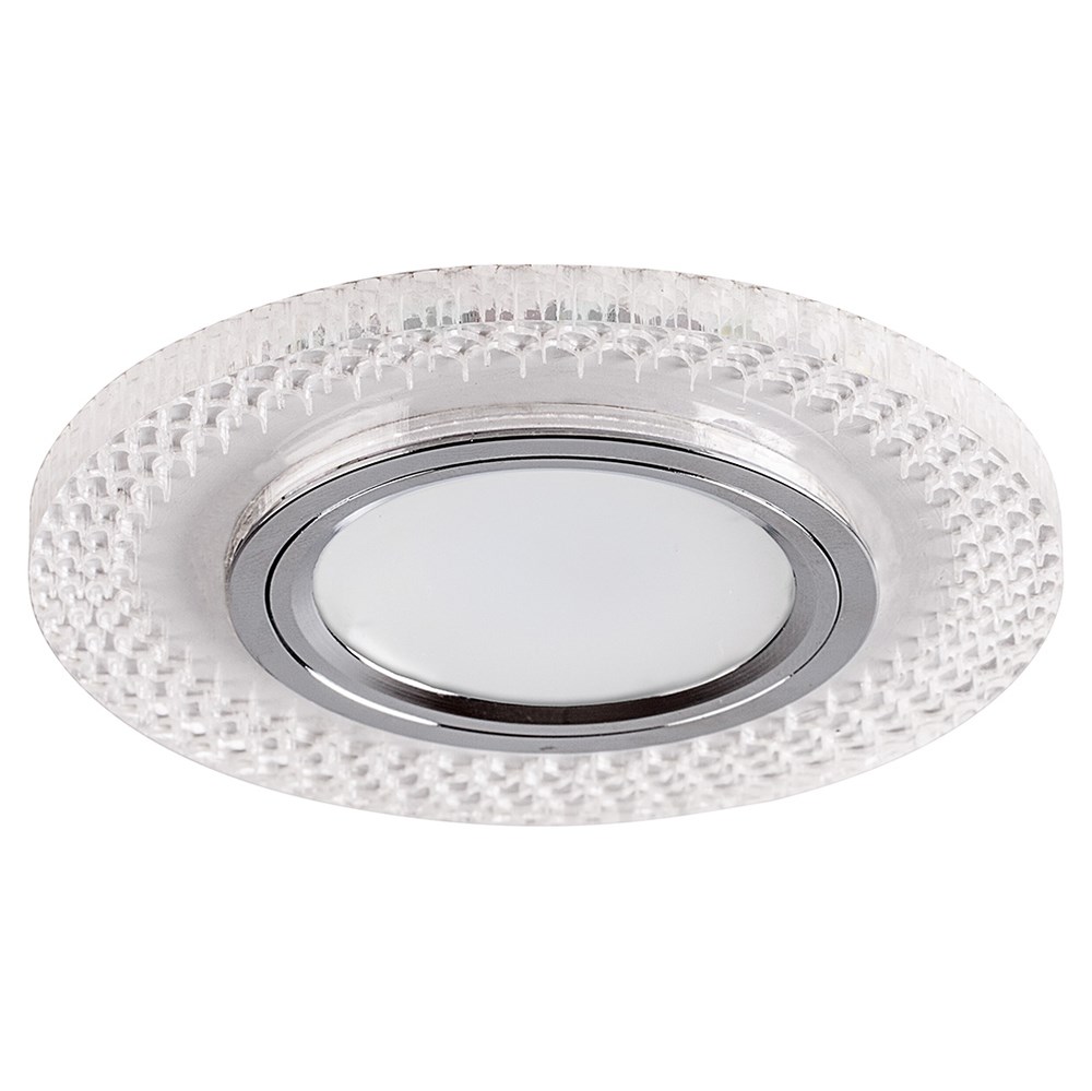 Светильник потолочный встраиваемый (ИВО) FERON CD955, под лампу с LED подсветкой 15LED*2835 SMD 4000K, MR16 G5.3, прозрачный хром, круг, 95*95*20 мм, монтажн.отв. 60 монтажный диаметр 60мм, корпус полимер, неповоротный