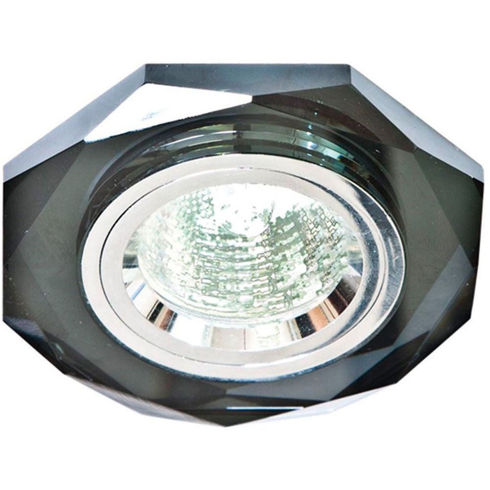 Светильник потолочный встраиваемый (ИВО) FERON DL8020-2/8020-2, под лампу MR16 G5.3, серый хром, 8-ми гранник, 90*90*25 мм, монтажн.отв. 60 монтажный диаметр 60мм, корпус стекло, неповоротный