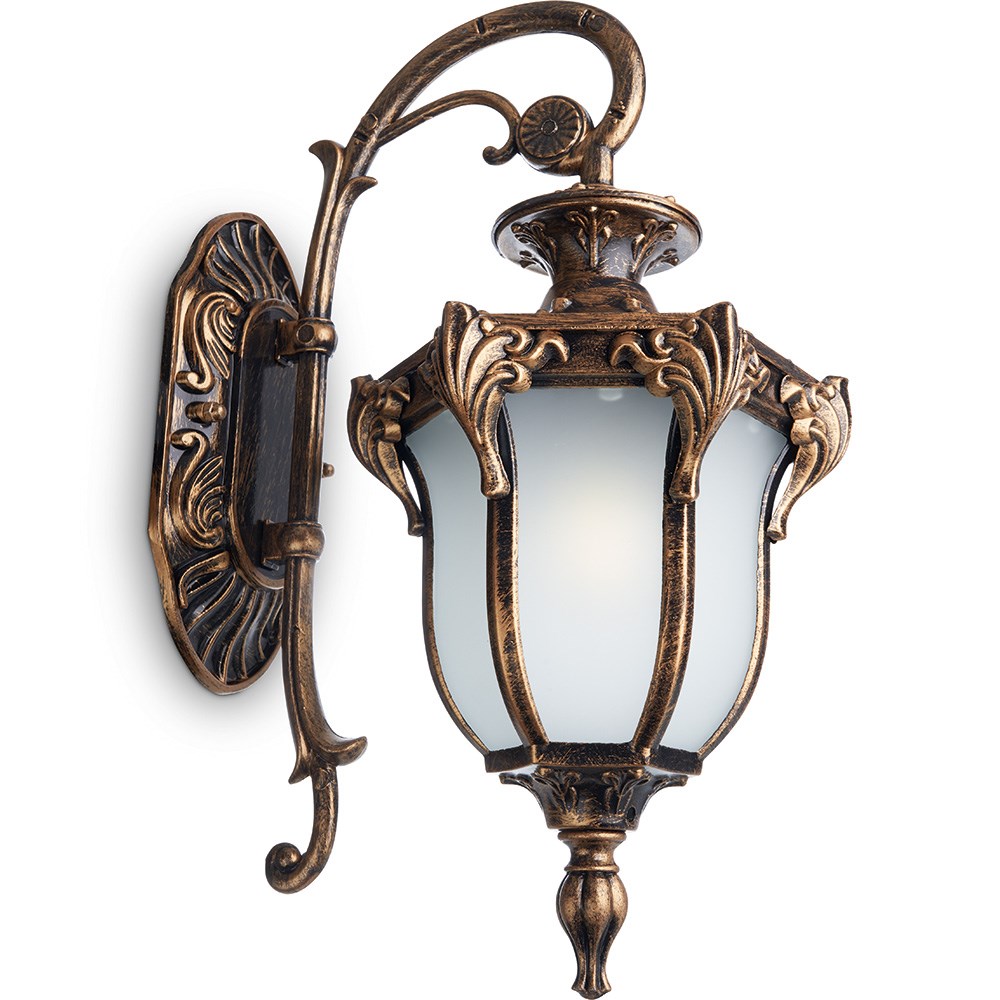 Светильник садово-парковый, серии «Флоренция» (НБУ) FERON PL4042 1*60W, E27, 230V, IP44, цвет черное золото, 6-и гранник, на стену вниз, 270*175*410мм