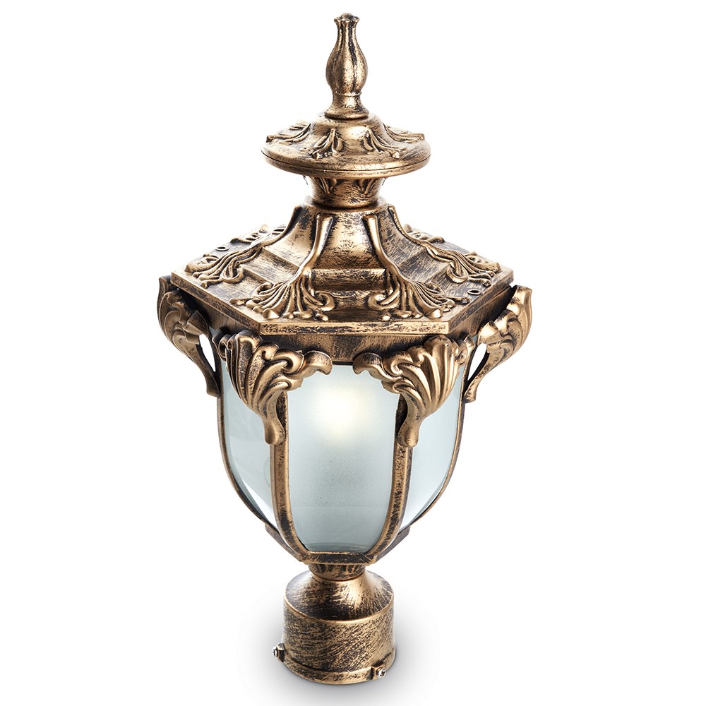Светильник садово-парковый, серии «Флоренция» (НТУ) FERON PL4045 1*60W, E27, 230V, IP44, цвет черное золото, 6-и гранник, на столб, 200*175*370мм