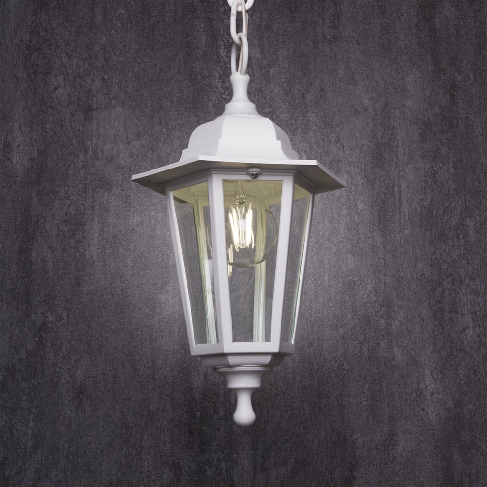 Светильник садово-парковый, серии «Классика» (НСУ) FERON НСУ 06-60-001 1*60W, E27, 230V, IP44, цвет белый, 6-и гранник, на цепочке, 190*190*670мм