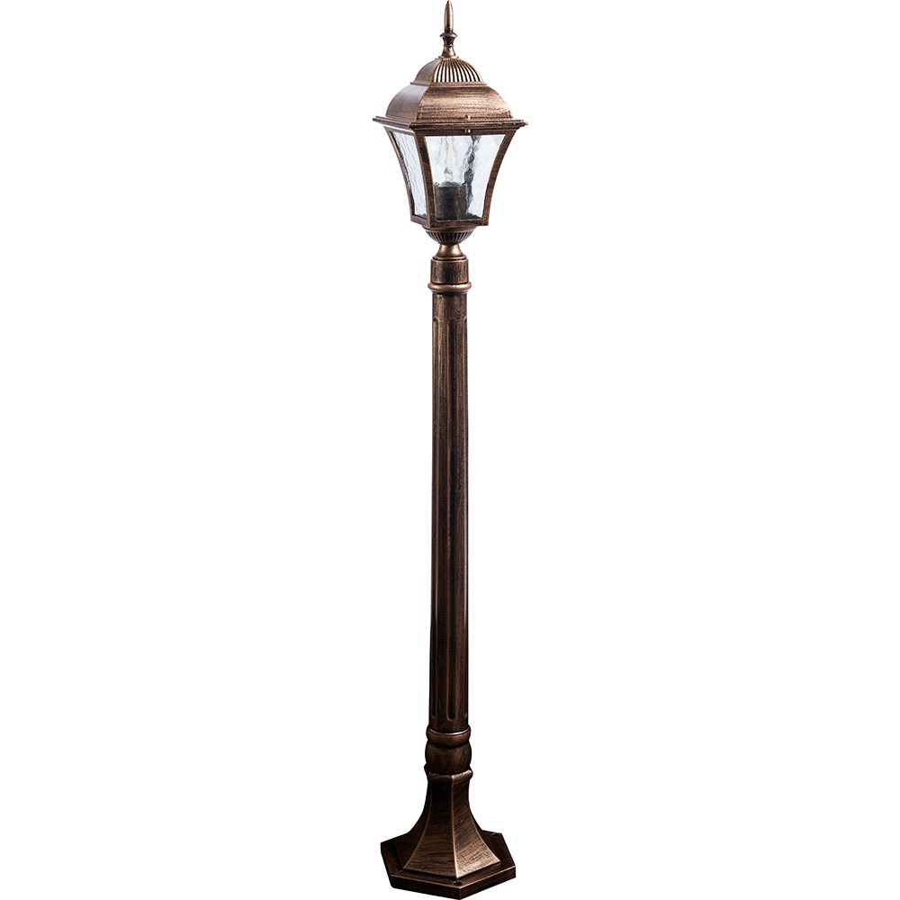 Светильник садово-парковый, серии «Таллин» (НТУ) FERON PL616 1*60W, E27, 230V, IP44, цвет черное золото, 4-х гранник, столб, 145*145*1080мм