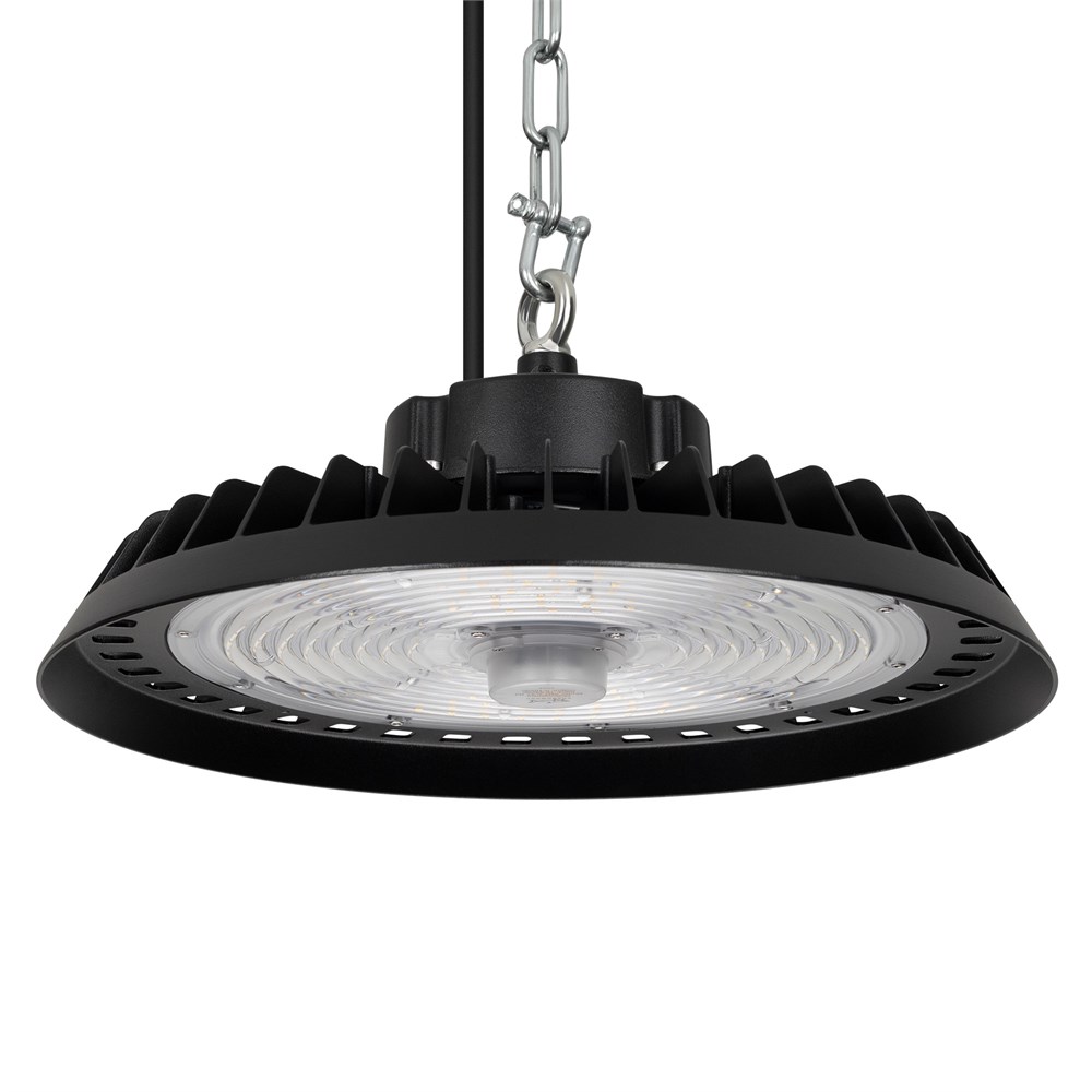 Светильник SP-ARIVA-MOTION мощностью 200 Вт, дневного цвета свечения 5000K, световым потоком 30000 лм и углом рассеивания 60 градусов предназначен для освещения складских и промышленных помещений. Черный цвет корпуса, габариты Ф350xH140 мм, степень пылевлагозащиты IP65., индекс цветопередачи CRI 80, степень ударопрочности IK08. Рым-болт в комплекте. Датчик настраивается с помощью пульта 052018 (один на все датчики). Доступно управление по протоколу 0-10В.