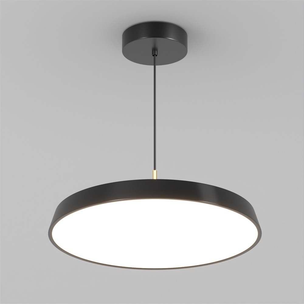 Подвесной светильник SP-ELEGANT-R500-37W Warm3000 (BK, 120 deg, 230V) мощностью 37 Вт с теплым белым цветом свечения (3000 К) и индексом цветопередачи CRI>80 для освещения торговых, офисных, жилых и других помещений. Круглый корпус из стали на изящном подвесе длиной 1200 мм с золотистой декоративной вставкой будет уместно смотреться в любом интерьере. Световой поток 3071 лм и широкий угол излучения 120° для создания основного освещения. Коэффициент пульсации менее 1% гарантирует комфортное и приятное для глаз освещение без мерцания. Подвесной монтаж и удобная регулировка длины подвеса без специального инструмента. Компактный встроенный драйвер позволяет быстро и безопасно подключить светильник к сети переменного тока 230 В.