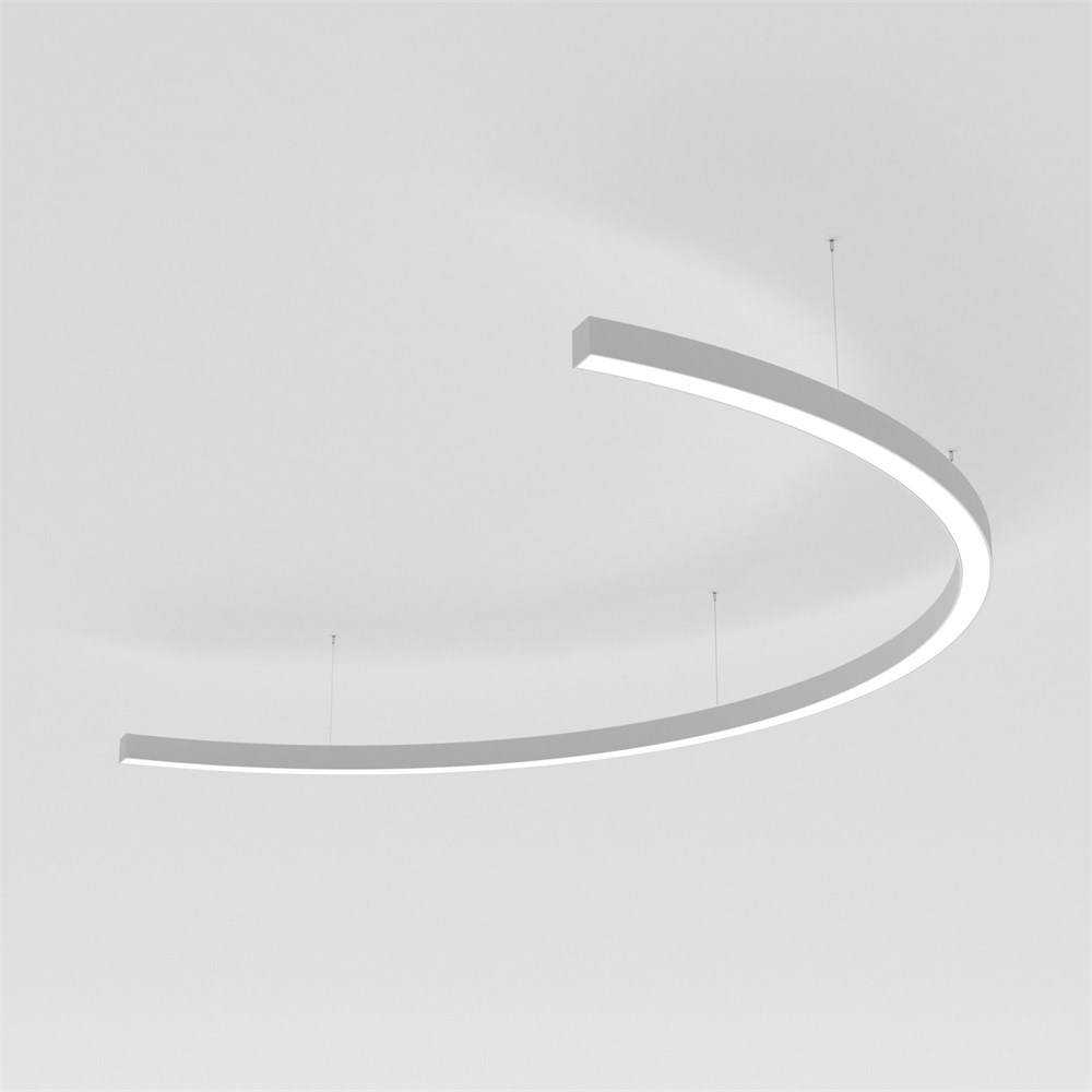 Светильник полукруг из профиля SL-ARC-3535-D1500-A90 WHITE, свечение вниз, цвет Тёплый 3000 K (Дуговая линейка ARC арт.027643 в 1 ряд). Диаметр 1500 мм, сечение - 36x36 мм. Способ установки - подвесной 2м. Цвет корпуса - белый RAL9003, класс защиты IP20. Световой поток на 1 метр 1134/общий 2632, лм. Мощность 61 Вт, питание 230 В. В комплекте 1 шт блок питания арт.028884, внешний, без управления. Гарантия 36 мес. Поставка в сборе