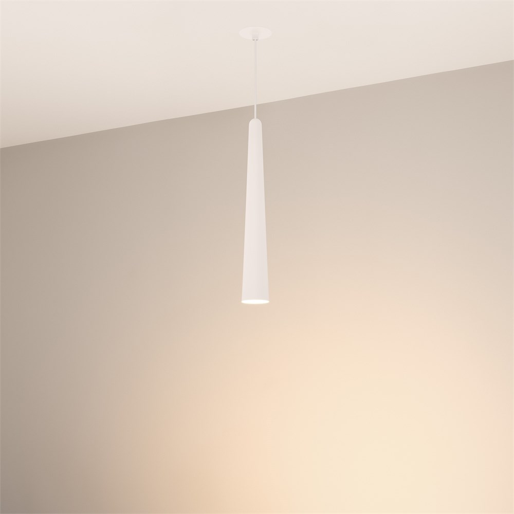 Подвесной светодиодный светильник STIRIA мощностью 5 Вт предназначен для акцентной декоративной подсветки в жилых или коммерческих помещениях. Светильник с узким углом излучения 36 градусов оригинально дополнит интерьеры кухни-гостиной или помещений отелей, кафе, ресторанов. Максимальная длина регулируемого подвеса 2000 мм. Подключение осуществляется с помощью входящего в комплект драйвера напрямую к сети переменного тока 230 В. Индекс CRI>92 отвечает за отличное восприятие и передачу цветовых оттенков. Низкая пульсация обеспечивает комфортное освещение без мерцания. Алюминиевый окрашенный корпус светильника выполнен в форме удлиненного конуса. Пылевлагозащита на уровне IP20 позволяет применять модель внутри помещений, где нет контакта с водой или другими жидкостями. Два вида монтажных чаш в комплекте позволяют установить светильник как встраиваемым способом, так и накладным.