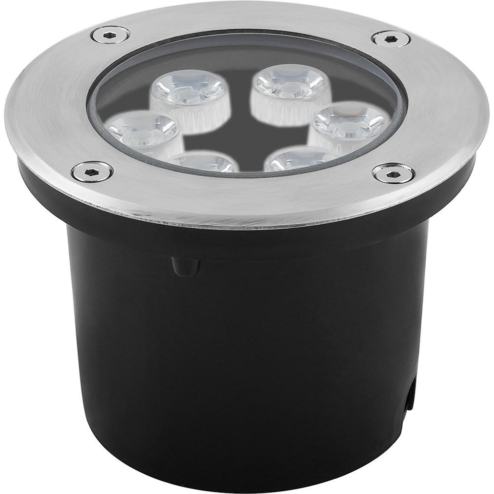 Тротуарный светильник светодиодный, встраиваемый (ДВУ) FERON SP4112, 6W, 6400К (дневной), 230V/50Гц, 480Lm, IP67, угол рассеивания 24°, 6LED*HPL, класс защиты 1, цвет металлик, корпус алюминий, сталь, 120*120*90мм, D внутр. 90мм