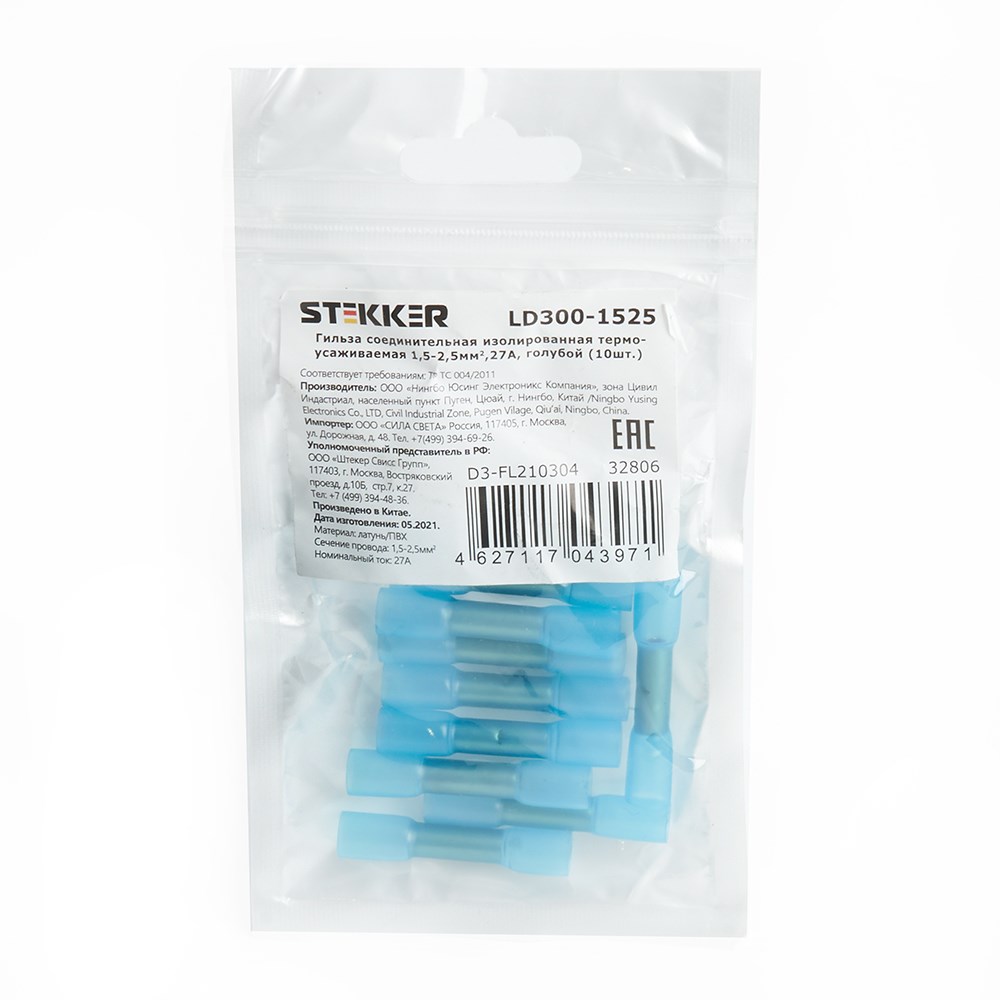 Термоусадочные коннекторы STEKKER LD300-1525, длина 38мм. шт. в наборе, цвет: голубой. Коэффициент у